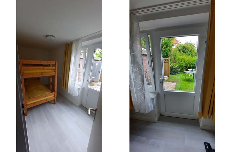 Die Wohnung Achterdeck liegt im Souterrain des Haus Sternenhimmel. Sie hat drei Zimmer - eine Wohnküche, ein Schlafzimmer und ein Kinderzimmer - sowie ein kleines Bad und bietet Platz für bis zu vier Personen. Als einzige unserer Wohnungen hat sie einen eigenen Ausgang zum Garten und eine eigene kleine Terrasse. Anders als in den anderen Wohnungen, sind hier auch Gäste mit Hund sehr willkommen.