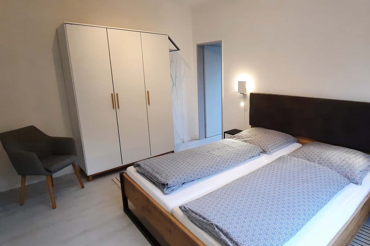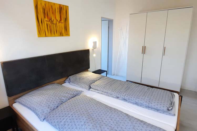 Die Wohnung „Pegasus” liegt im Erdgeschoss auf der Westseite des Haus Sternenhimmel. Sie hat drei Zimmer - eine Wohnküche, ein Schlafzimmer und ein Kinderzimmer - sowie ein kleines Bad und bietet Platz für bis zu vier Personen.