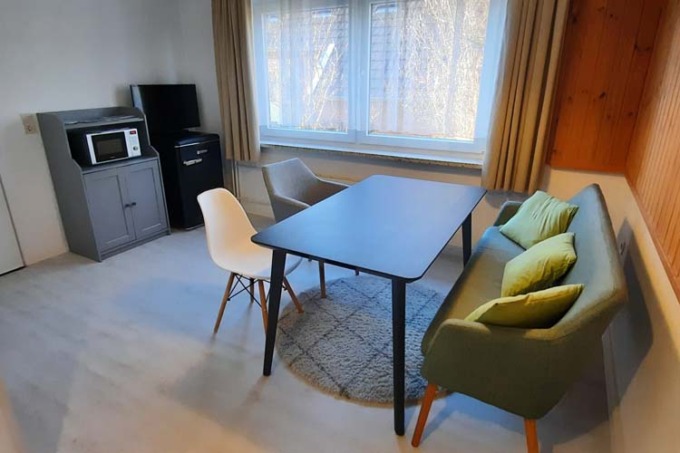 „Pegasus” ist ein Nichtraucher-Apartment mit offener Wohnküche und gemütlicher Sitzecke. Wie unsere anderen Wohnungen auch, erhielt sie im Frühjahr 2021 einen frischen Anstrich, einen neuen Fußboden sowie neue Möbel inklusive einer neuen Küche mit Spülmaschine. Die Bäder haben nun moderne Thermostat-Mischbatterien. Ein Fahrrad zum Einkaufen sowie Bollerwagen für Ausflüge stehen bereit.