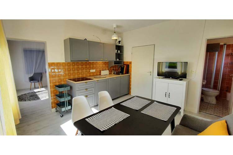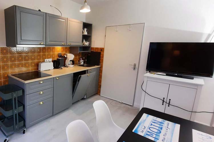„Sextant” ist ein Nichtraucher-Apartment für 2 Personen (auf Anfrage auch 3 Personen möglich) mit offener Wohnküche und gemütlicher Sitzecke. Wie unsere anderen Wohnungen auch, erhielt sie im Frühjahr 2021 einen frischen Anstrich, einen neuen Fußboden sowie neue Möbel inklusive einer neuen Küche mit Spülmaschine. Die Bäder haben nun moderne Thermostat-Mischbatterien. Ein Fahrrad zum Einkaufen sowie Bollerwagen für Ausflüge stehen bereit.